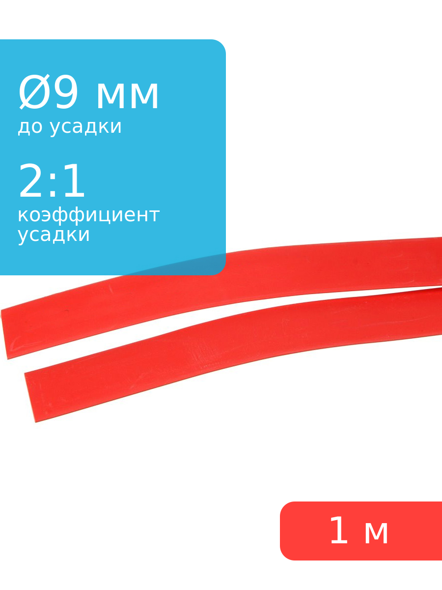 Трубка термоусадочная 9.0*1000 красная, 1 метр