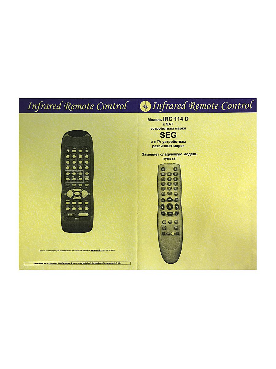 Данный пульт заменяет следующие оригинальные пульты к SAT устройствам SEG: SAT SEG