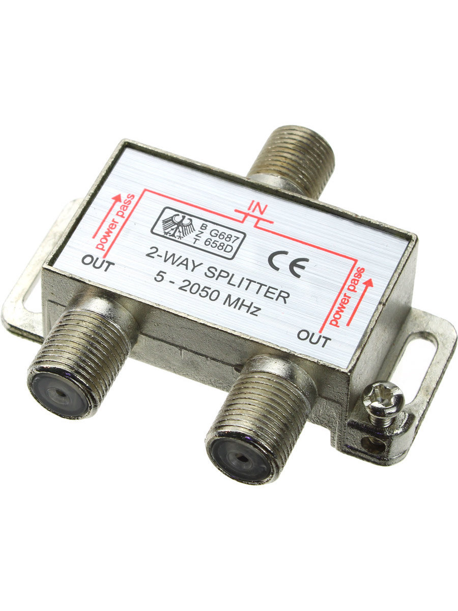 Телевизионный краб или делитель используется там, где необходимо подключить к одной антенне несколько приемников телесигнала. Сплиттер разделяет идущий от антенны сигнал поровну на то количество выходов, которое имеется у делителя. Это способствует тому, что сигнал и, соответственно, качество изображения на всех аппаратах, подключенных к выходам сплиттера, остается одинаково высоким. Особенностью ТВ делителя на 2 выхода под F разъём,является обеспечение пропускной способности до 2500 МГц. Основная область использования этих делителей – спутниковое телевидение. Подключение кабелей осуществляется с помощью стандартных F-разъемов. Хорошее качество спутникового телевизионного сплиттера на 2 выхода позволяет с одной спутниковой тарелки получать на 2-х телевизорах четкое, стабильное изображение. При использовании спутниковой тарелки для нескольких телевизоров, спутниковый ТВ делитель на 2 выхода является незаменимым, удобным и наиболее эффективным решением.