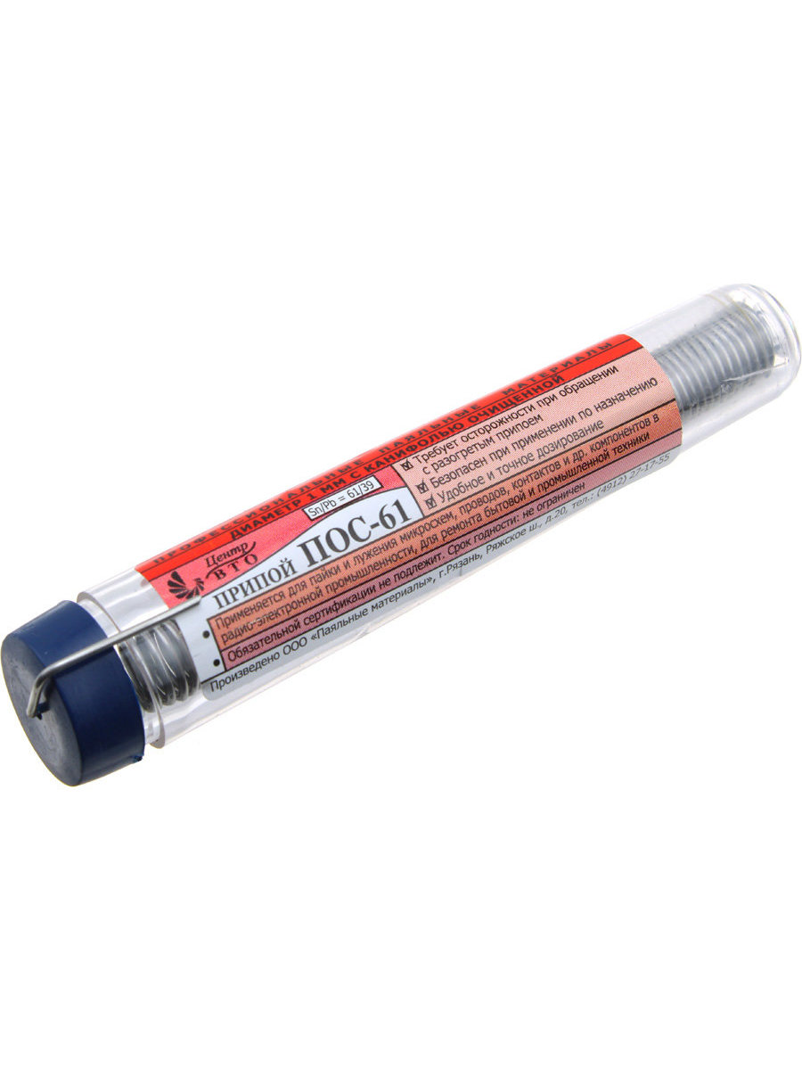 Припой ручка с канифолью 1мм 10гр ПОС61 с канифолью