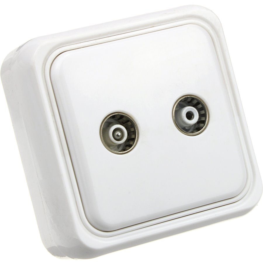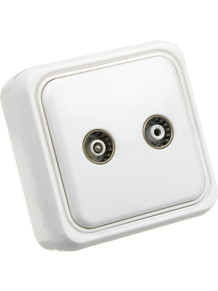 Незаменимым компонентом телевизионной и видеосистемы является телевизионная розетка. Она упрощает прокладку и эксплуатацию телевизионных кабелей, которые проводят в помещениях: жилых домах и предприятиях. Розетка содержит два разъема для телевизионного кабеля. Розетка накладная телевизионная (2 порта), (малая) изготовлена из качественного белого глянцевого пластика и отлично подойдет к любому интерьеру. Розетка размещается на стене накладным способом.