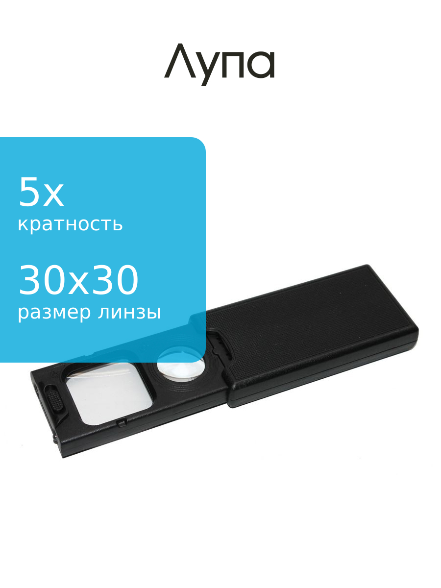 Лупа 30*30мм 5Х 21мм/45Х 1свд/1УФ раздвижная