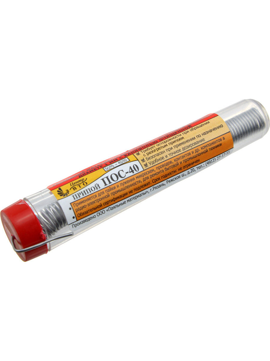 Припой ручка с канифолью 1мм 10гр ПОС40 жел/кр