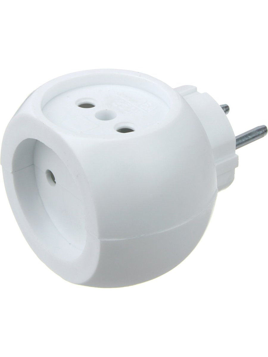 Сетевой тройник электрический «Шар» 220 В, 16 А белый предназначен для подключения к электрическим сетям с напряжением 220 В.