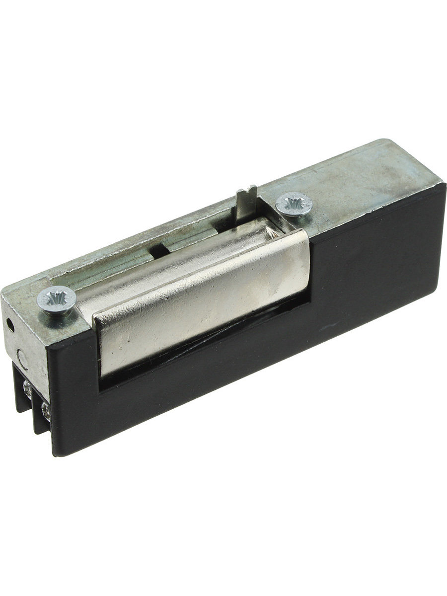 Электрозащелка, нормально-закрытая, стандартная, несимметричная, рычаг разблокировки, без планки.