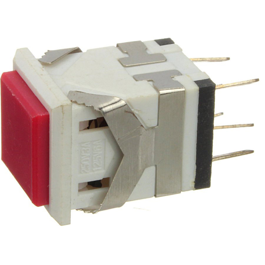 Кнопка 18мм квадратная Крас/белая с фиксацией 6PIN