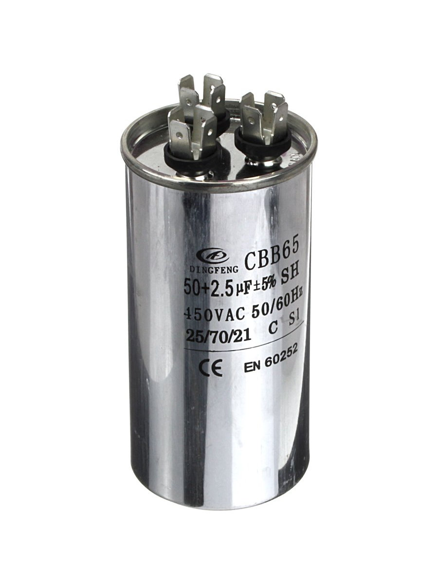 Конденсатор пусковой 50мкФ 450В 5% CBB65A, клеммы, металл корпус, для кондиционеров