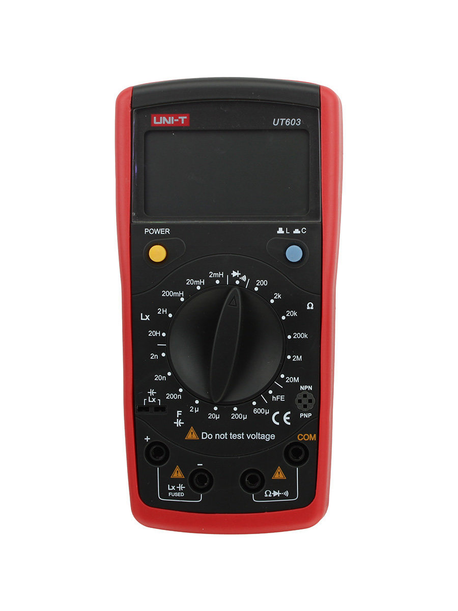 Измеритель иммитанса UT603 (Измеритель RLC) — радиоизмерительный прибор, предназначенный для определения параметров полного сопротивления или полной проводимости электрической цепи. Название прибора складывается из измеряемых прибором величин: R — Сопротивление, С — Ёмкость, L — Индуктивность. Иммитанс — обобщающее понятие для полного (комплексного) сопротивления — импеданса и полной (комплексной) проводимости — адмиттанса. Данный прибор кроме своих основных функций так же оснащен функцией тестирования диодов и прозвонки целостности цепи. Инженеры старались сделать прибор максимально удобным для использования, и все переключения удобно производить даже одной рукой, но несмотря на это у прибора усиленный поворотный регулятор, благодаря которому исключается возможность случайного нажатия. Прибор изготовлен из высококачественных материалов. Изделие комплектуется специальным чехлом, который защитит прибор от внешних механических повреждений. Калибровка и тестирование приборов произведено под контролем компании REXANT INTERNATIONAL. Измеритель иммитанса снабжен подставкой, которая позволяет разместить прибор на любой плоской поверхности.
