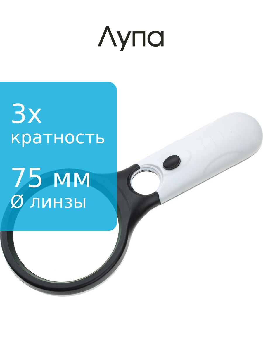 Лупа 75мм 3Х 22мм 45х подсветка 3СВД 3бат ААА