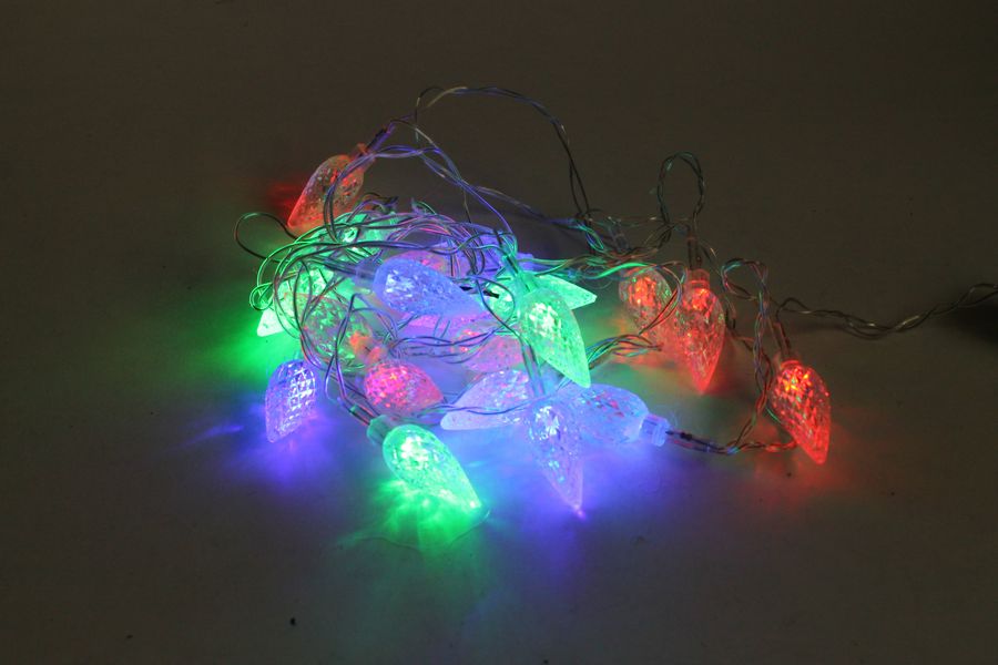 Украшение интерьера - светодиодная гирлянда с заменяемыми лампами в форме шишек. Количество светодиодов - 20 штук. Работает от сети 220В. Длина 3,8м. Цвет свечения - разноцветный.