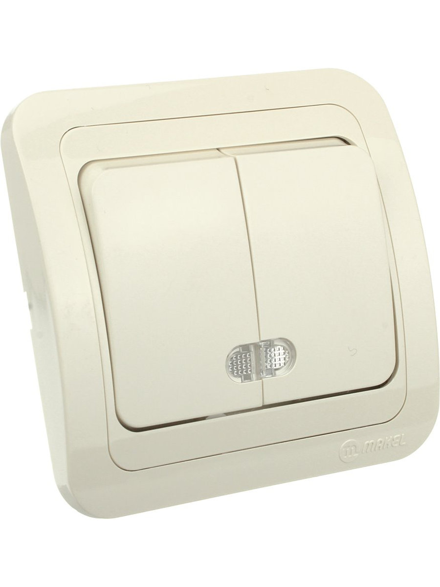 Сетевой выключатель Makel Mimoza 2кл кремовый/подсветка