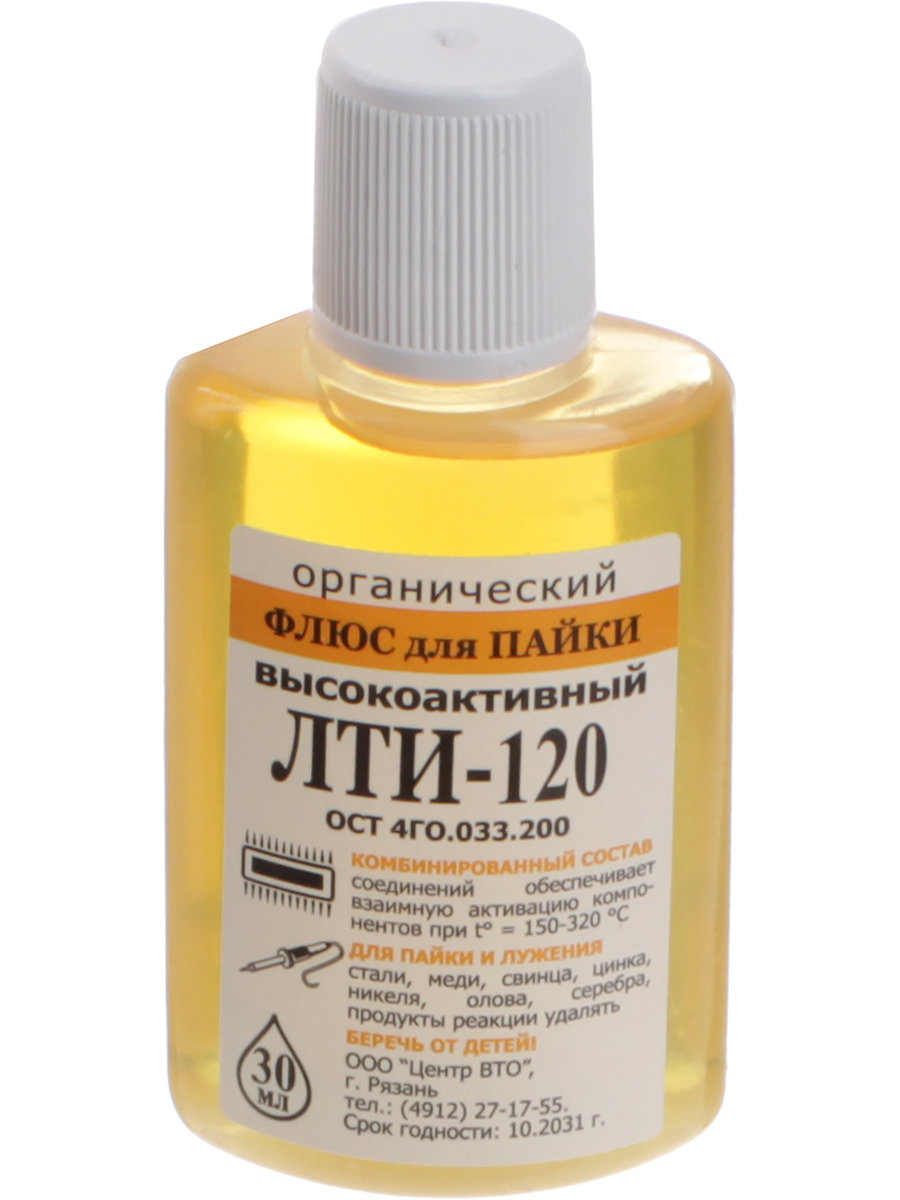 Флюс ЛТИ-120 классический высокоэффективный флюс для пайки и лужения стали, меди, свинца, цинка, никеля, олова, серебра, кадмия, палладия, висмута при условии полного удаления остатков флюса.
