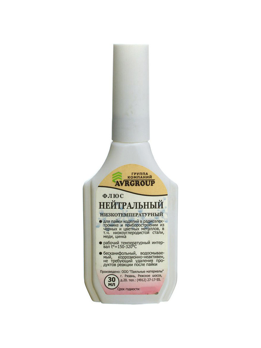 Флюс нейтральный низкотемпературный применяется для пайки изделий в радиоэлектронике и приборостроении из черных и цветных металлов, в том числе низкоуглеродной стали, меди, цинка.