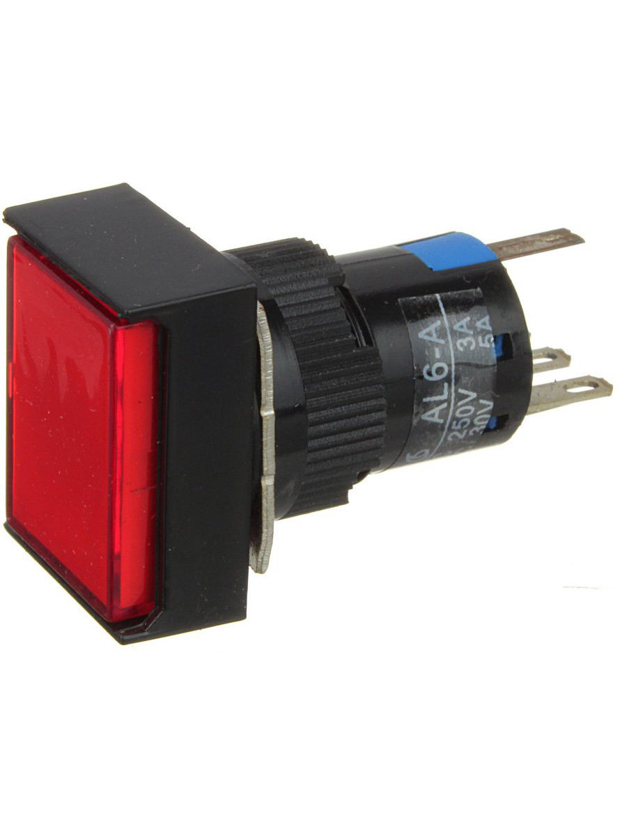 Кнопка 18*23мм прямоуг Красн/черн с фиксацией 5конт подсветка