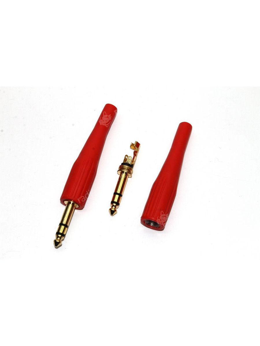Разъем J6.3 stereo gold резиновый красный на кабель Premier