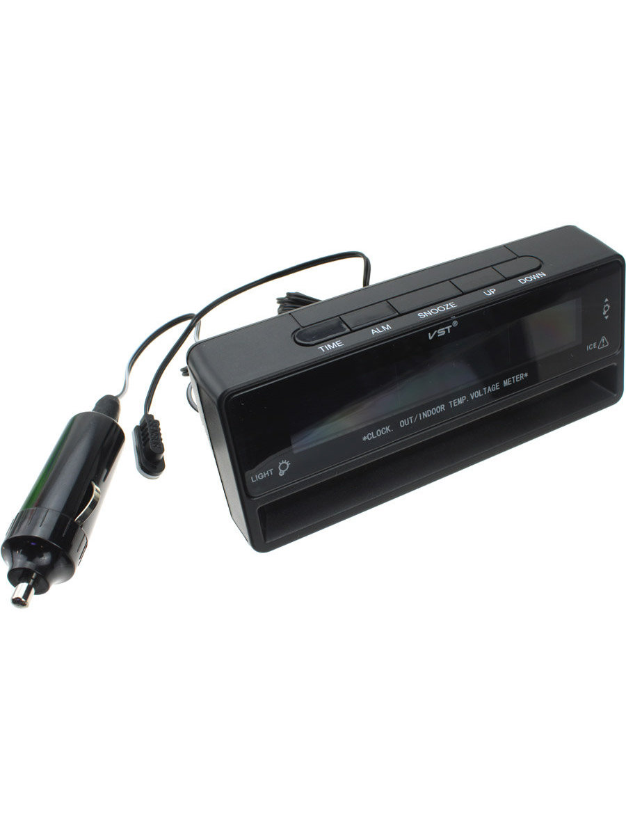 Термометр с часами VST-7010V 1 дисплей, авто прикуриватель 2AG13 подсветка зеленая/синяя