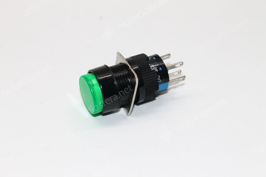 Кнопка d15мм Зелен/черн с фиксации5конт подсветка