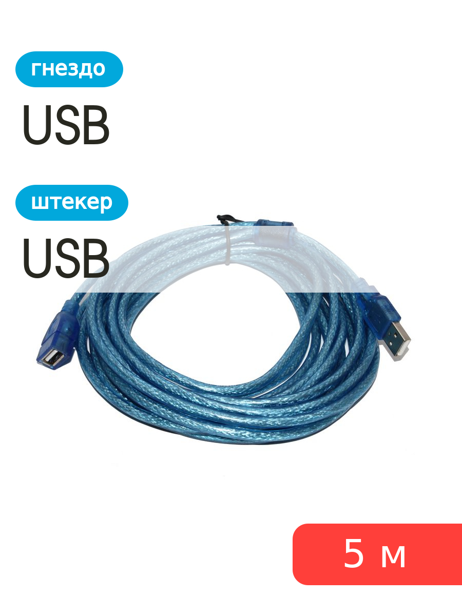 Удлинительный кабель USB-USB(G) вилка-розетка дает возможность вывести USB порт компьютера на 5 м (на длину кабеля). Таким образом, пользоваться портом станет удобно, так как он всегда будет под рукой на рабочем столе. Также с помощью такого изделия можно подсоединить к ПК периферию, в конструкции которой предусмотрен USB разъем.
