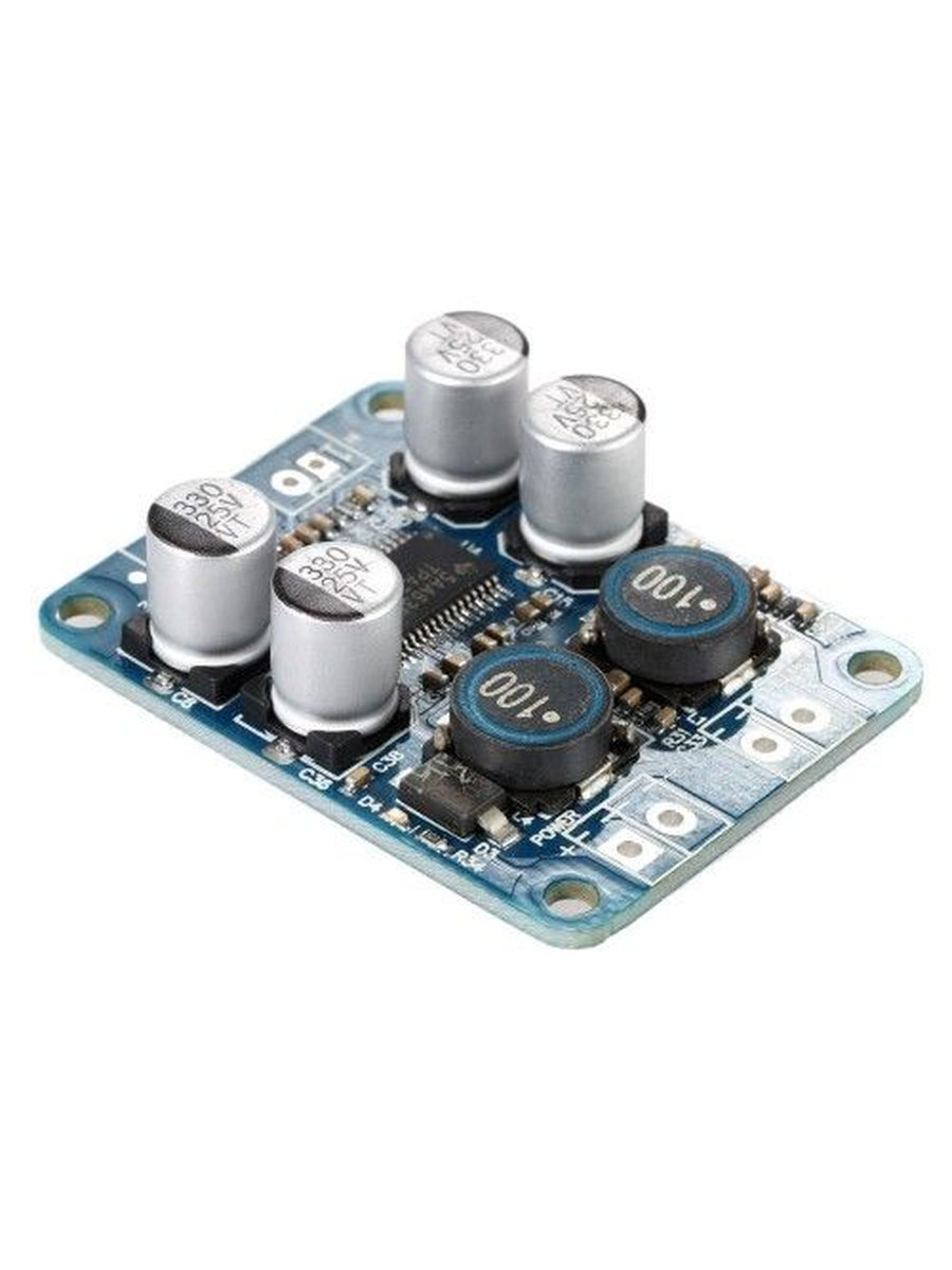 • Модуль усилителя построен на базе микросхемы TPA3118 - усилителя D-класса производства Texas Instruments. Особенности TPA3118 :