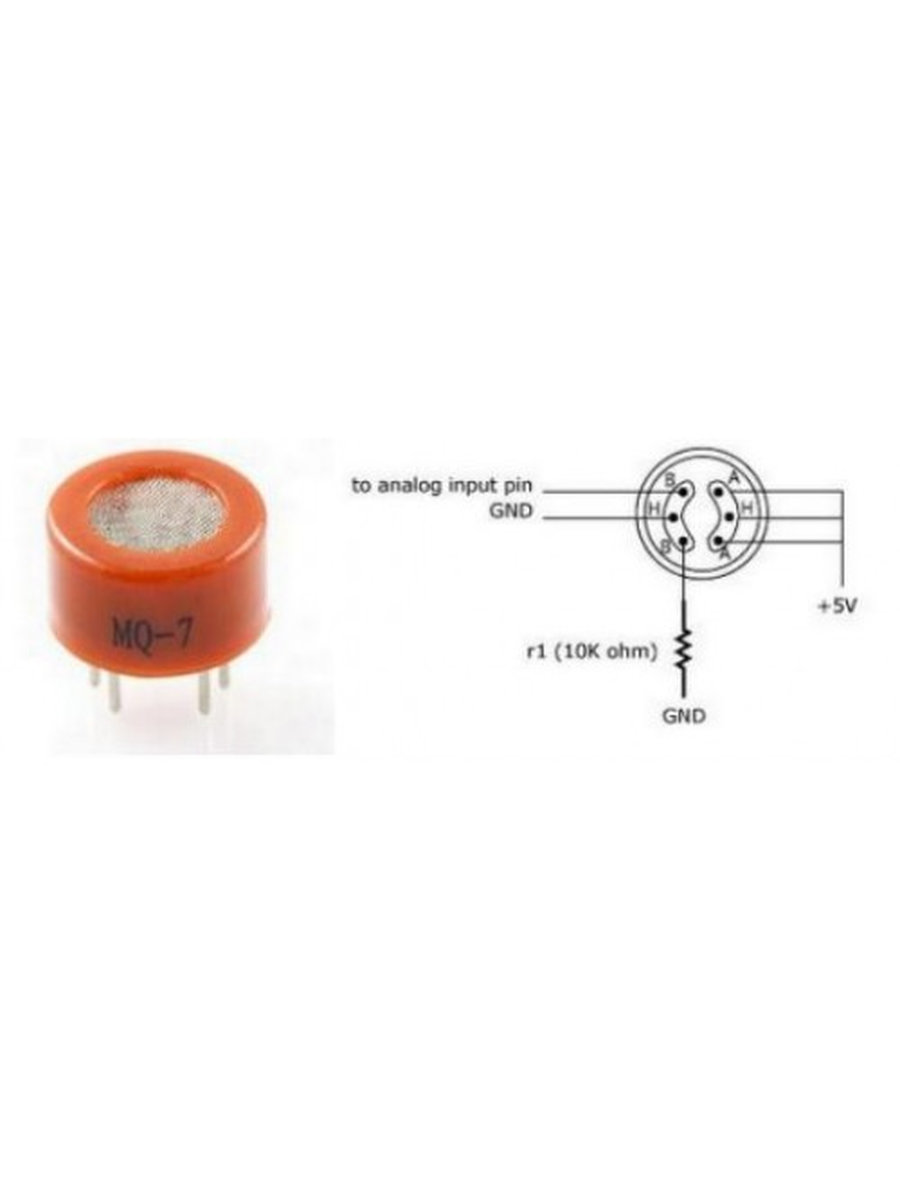 MQ7 является простым в использовании датчиком угарного газа (CO). Датчик подходит для зондирования концентрации СО в воздухе. Он может обнаружить CO-концентрацию газа в пределах от 20 до 2000 ppm. Чувствительность можно регулировать с помощью потенциометра.