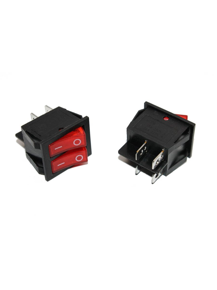 Выключатель 25*30 Красный 2клавиши 4 контакта