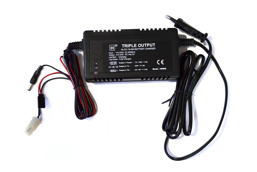 Battery Charger with Triple Output 2A 8sells/Tx/Rx - Зарядное устройство аккумуляторов NiMH/NiCd 6-8сells/Tx/Rx. Ток заряда 1-2 Ампер. Работает от сети 220V