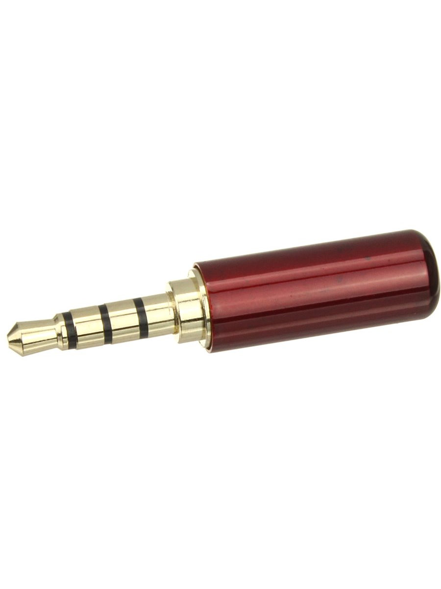 Разъем J3.5 4PIN metall/gold стерео на кабель без обтиратора красный