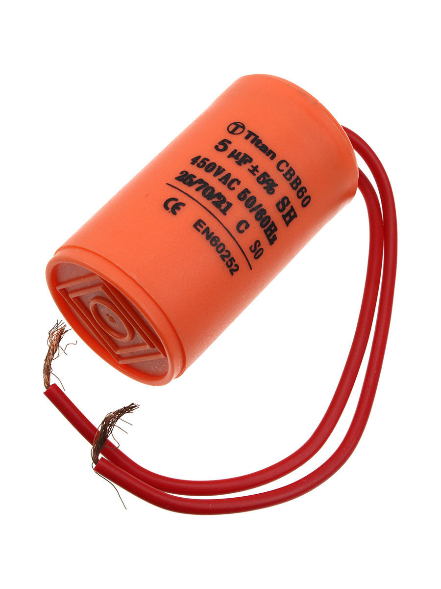 Конденсатор пусковой 5мкФ 450В 5% выводы провод