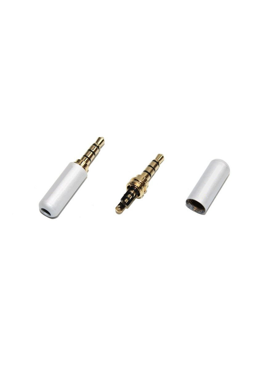 Разъем J3.5 4PIN metall/gold стерео на кабель без обтиратора белый