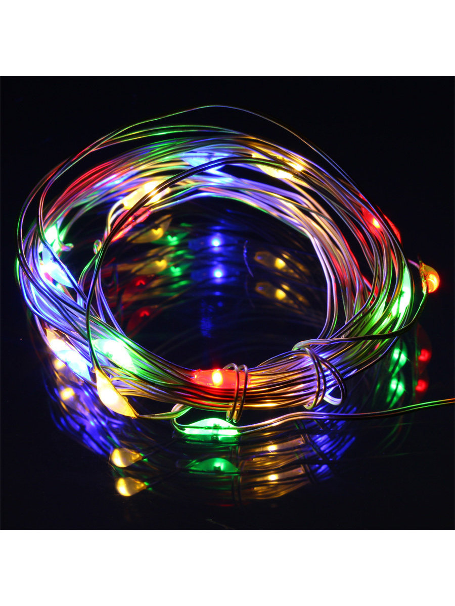 Светодиоды необычной каплевидной формы, тонкий и пластичный провод, который послушно гнётся в зависимости от задачи. Изделие не нагревается и не бьётся. Гирлянда очень удобна для создания дизайнерских инсталляций. Есть примеры вплетания в волосы и вшивание в одежду. Легкий бокс с батарейками не помешает выступлению на сцене.