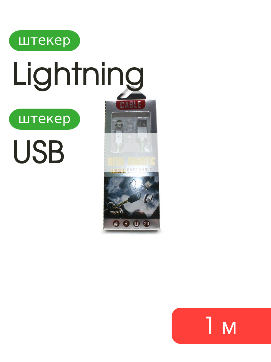 Шнур USB дата-кабель совместимый с iPhone 5 1м оплетка ткань магнитный