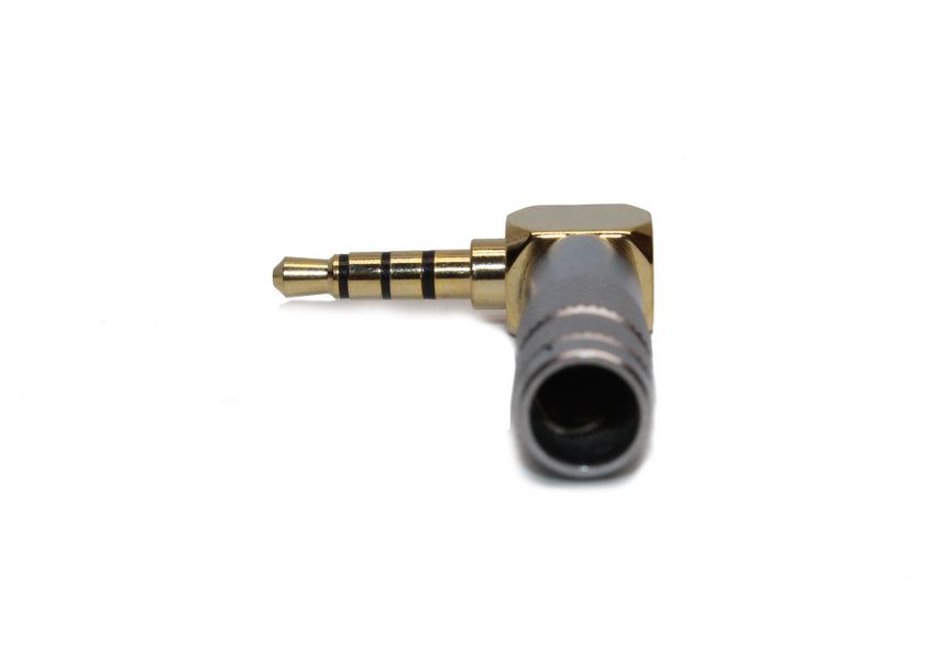 Разъем J3.5 штекер 4-контактный, металлический, золотисто-серебренный, углом, на кабель, без обтиратора.