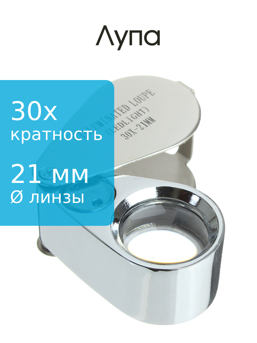 Лупа ювелирная 30Х 21мм металл раздвижная подсветка 2 свд