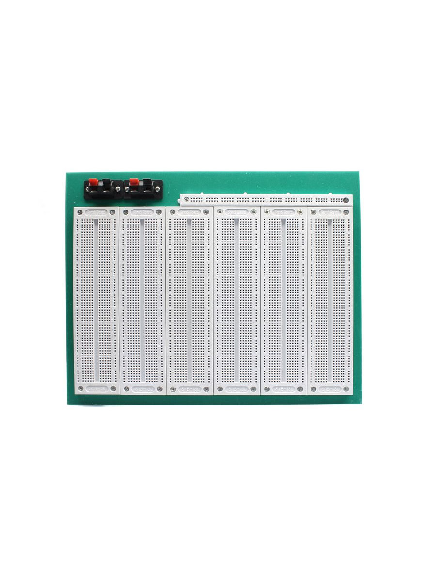 Макетная плата имеет 12 шин по 100 контактов каждая и 4 клеммы для подвода питания.