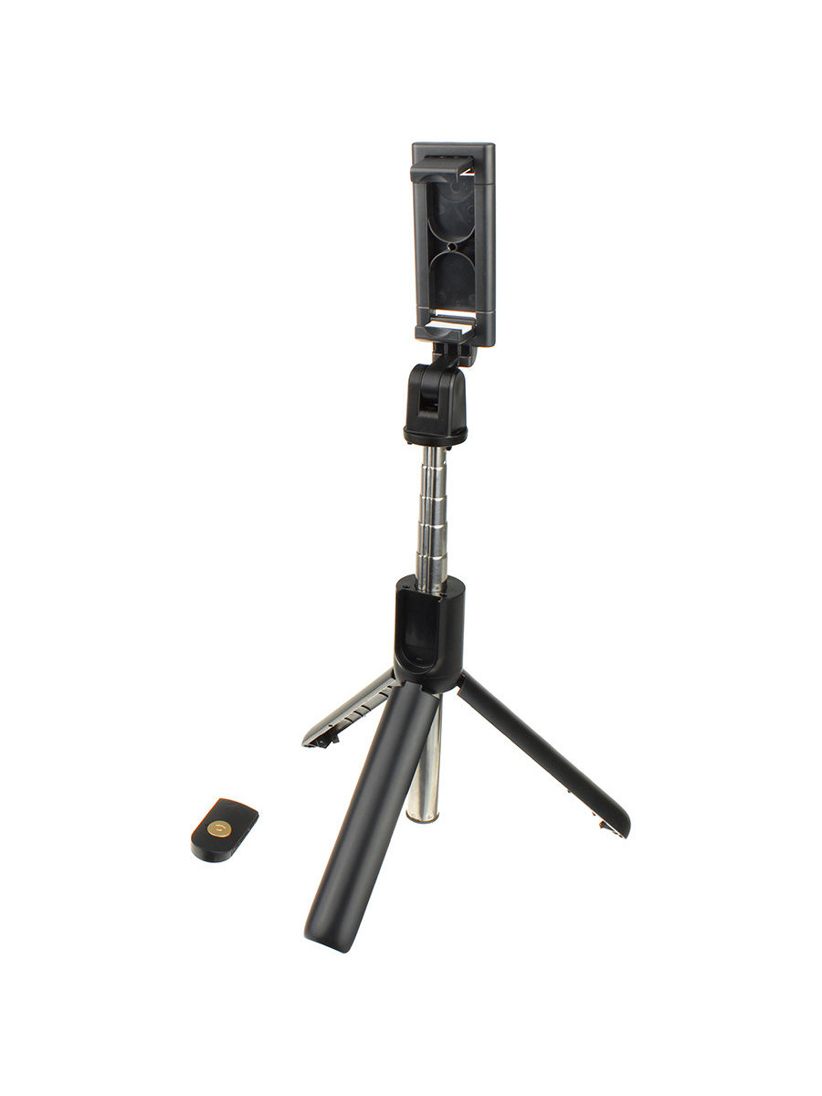 • Раскладная палка для селфи с триподом отдалит объектив смартфона для большего обзора или превратится в полноценный штатив. Простое, но надежное приспособление совместимо с разнообразными мобильными устройствами и цифровыми камерами. Лапки держателя прочно фиксируют гаджет для активной съемки.