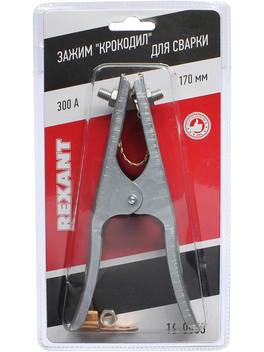 Зажим "крокодил" для сварки 300А 170мм REXANT представляет собой электромеханическое устройство, предназначенное для оперативного соединения или разъединения контакта проводов при выполнении сварочных работ, измерительных работ или монтажа электрических и слаботочных сетей. Зажим получил свое название за схожесть с челюстями крокодила. Состоит он из двух фигурных деталей с «крокодильими» зубцами, скрепленных серединами специальным штифтом и способных поворачиваться на некоторый угол вокруг оси соединения. К одной из деталей монтируется контактный провод. Сжатие «челюстей» обеспечивается пружиной, вставленной с другой стороны штифта. Зажим изготовлен из стали с никелированным покрытием.