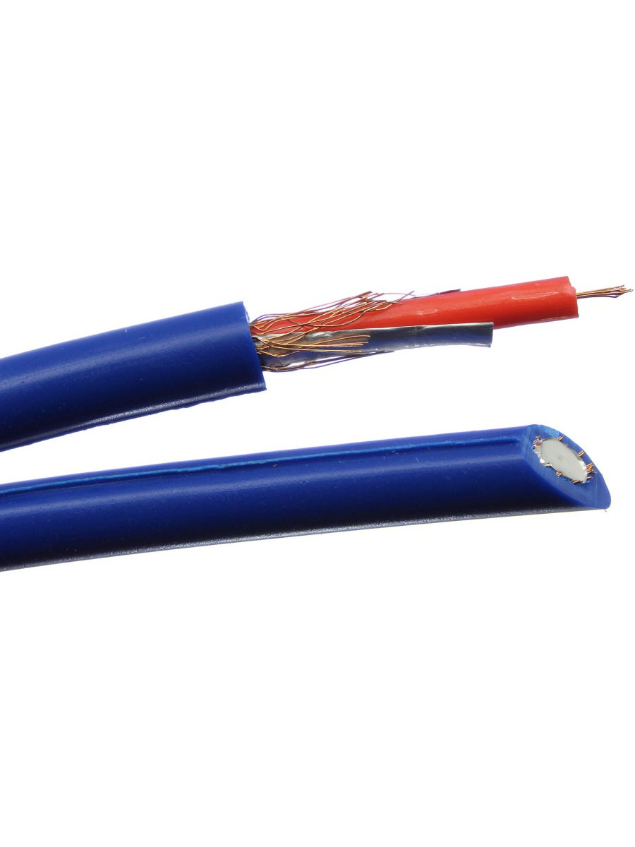 Состоит из двух медных жил, покрытых двумя экранами, внешний изолятор синего цвета.