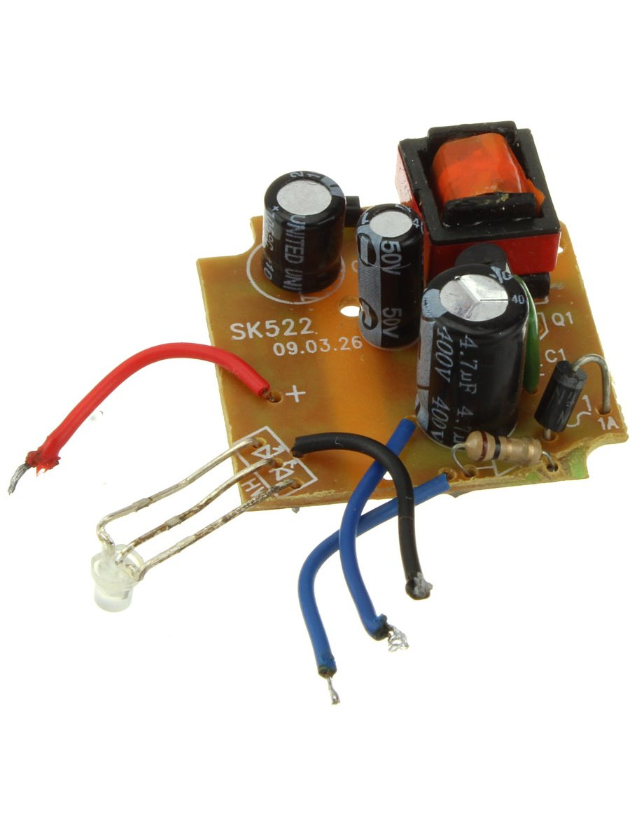 Плата зарядки литий полимерных аккумуляторов 220в выход 4.8 300 mah с контролем (индикатором) заряда.Размер платы 30.30.15мм.
