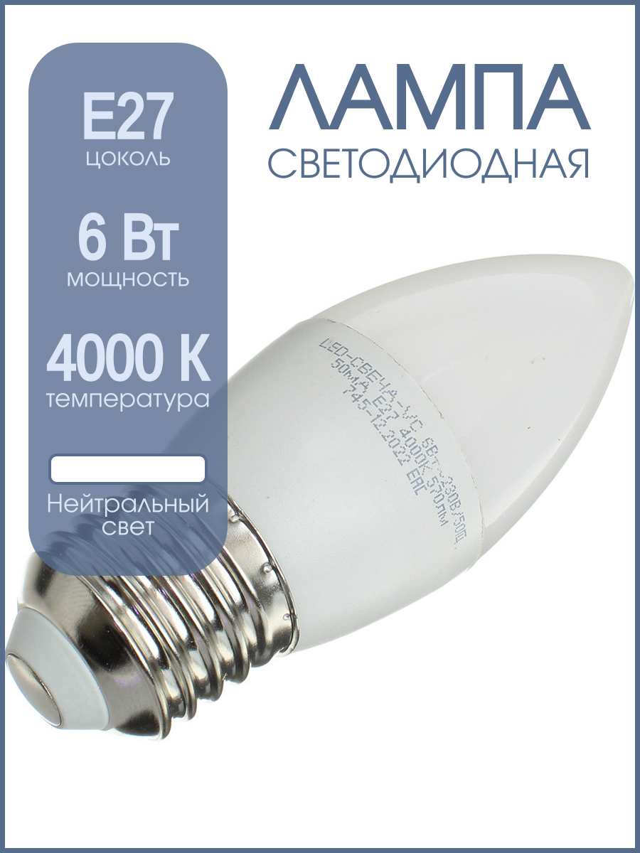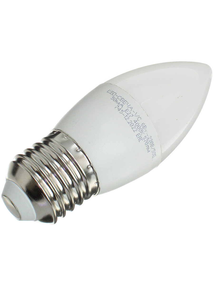Лампа светодиодная LED-Свеча-VC 6Вт 230В E27 4000К 480Лм in-home