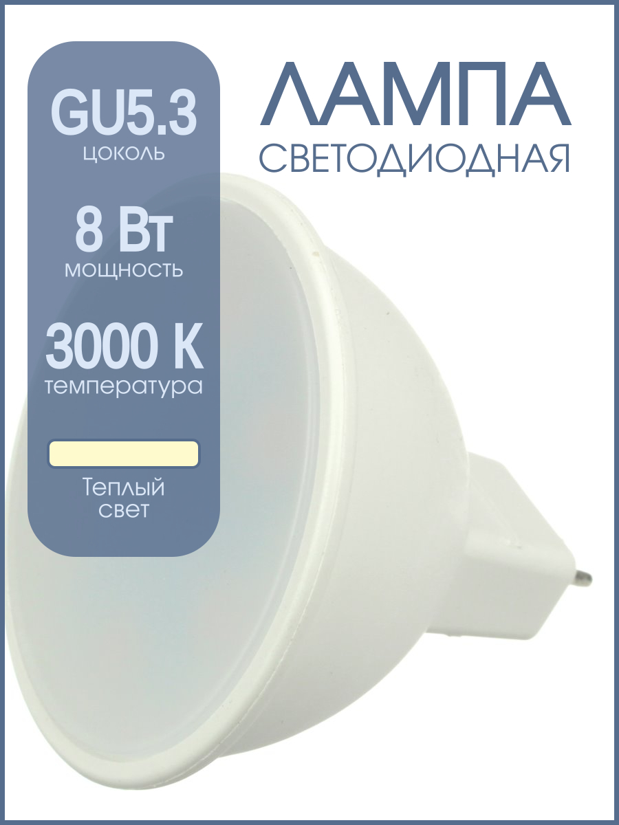 Лампа светодиодная LED-JCDR-VC 8Вт 230В GU5.3 3000К 600Лм in-home