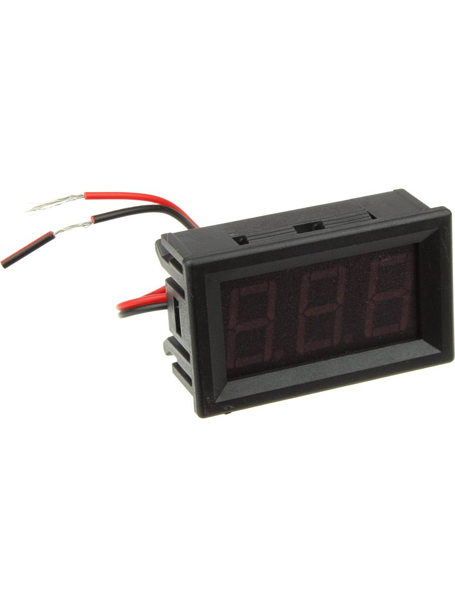 Модуль вольтметра предназначен для встраивания в приборную панель. Модуль питается от измеряемого напряжения.