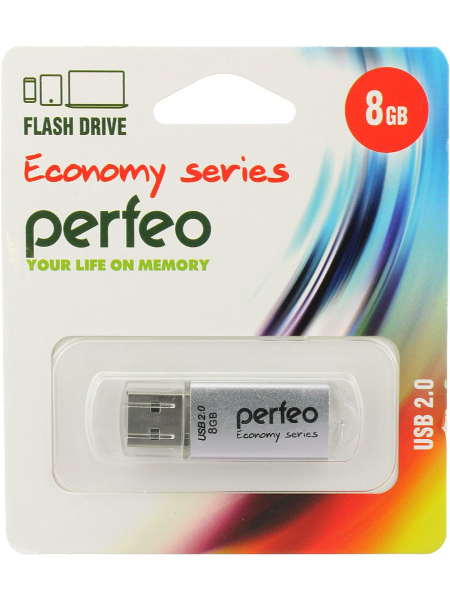 Флешка 8GB USB2 Perfeo E01 Silver