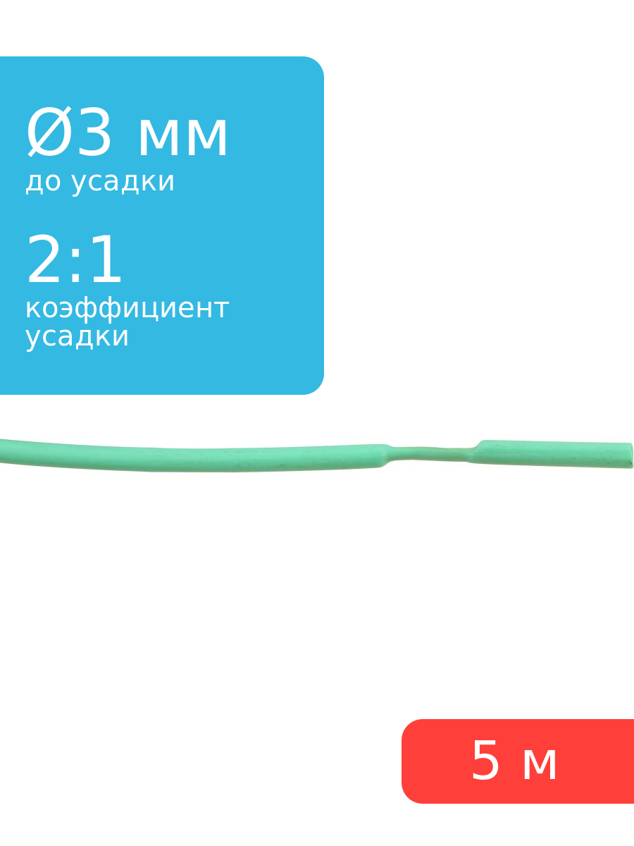 Трубка термоусадочная 3.0/1.5 зеленая, 5 метров