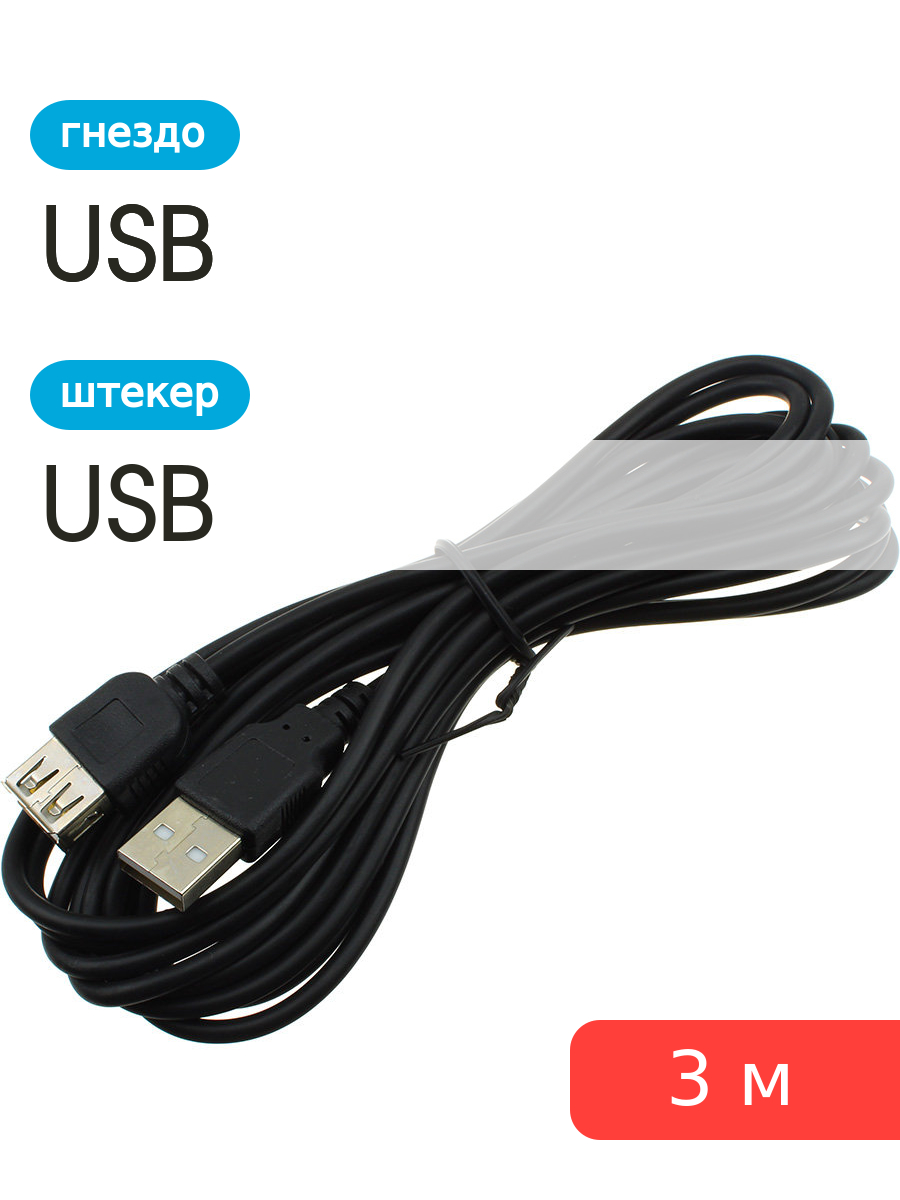 Удлинительный кабель USB-USB(G) вилка-розетка дает возможность вывести USB порт компьютера на 3 м (на длину кабеля). Таким образом, пользоваться портом станет удобно, так как он всегда будет под рукой на рабочем столе. Также с помощью такого изделия можно подсоединить к ПК периферию, в конструкции которой предусмотрен USB разъем.