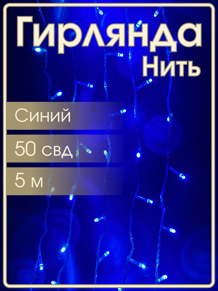 Гирлянда 50 СВД, синяя, 5 метров белый провод