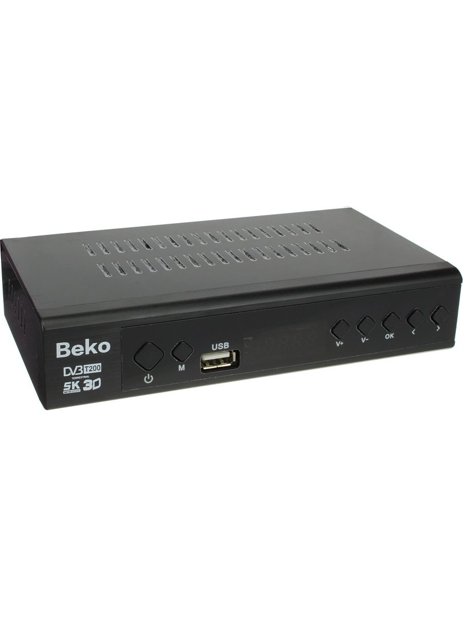 Тюнер T2 BEKO T200 - цифровой эфирный DVB-T2 ресивер в металлическом корпусе. Тюнер сочетает в себе функции Т2 ресивера и медиа проигрывателя. BEKO T200 воспроизводит с USB флешки аудио- и видео файлы в HD качестве, есть возможность подключения к интернету, встроены приложения YouTube, RSS новости, IPTV, погода.