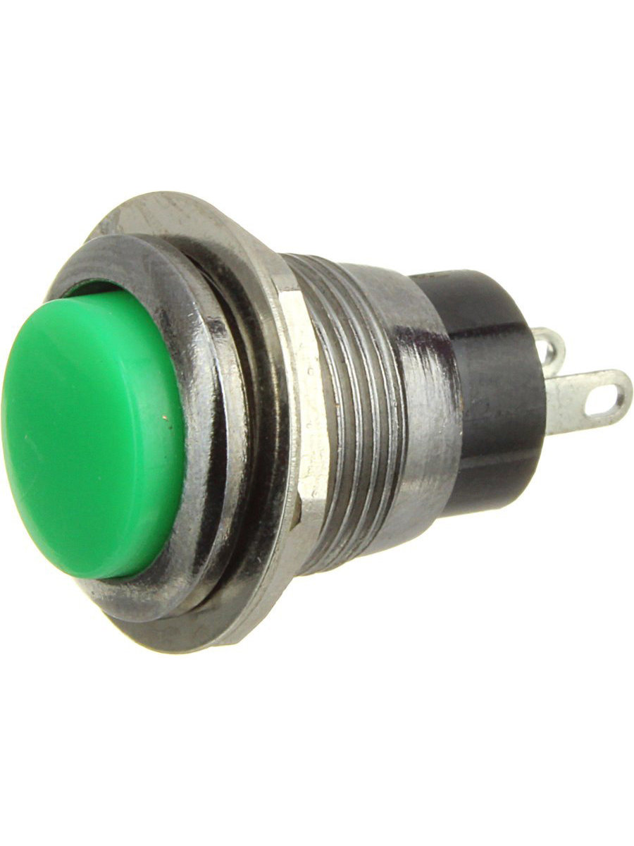 Кнопка 10мм круглая, зеленая, на замыкание, металл