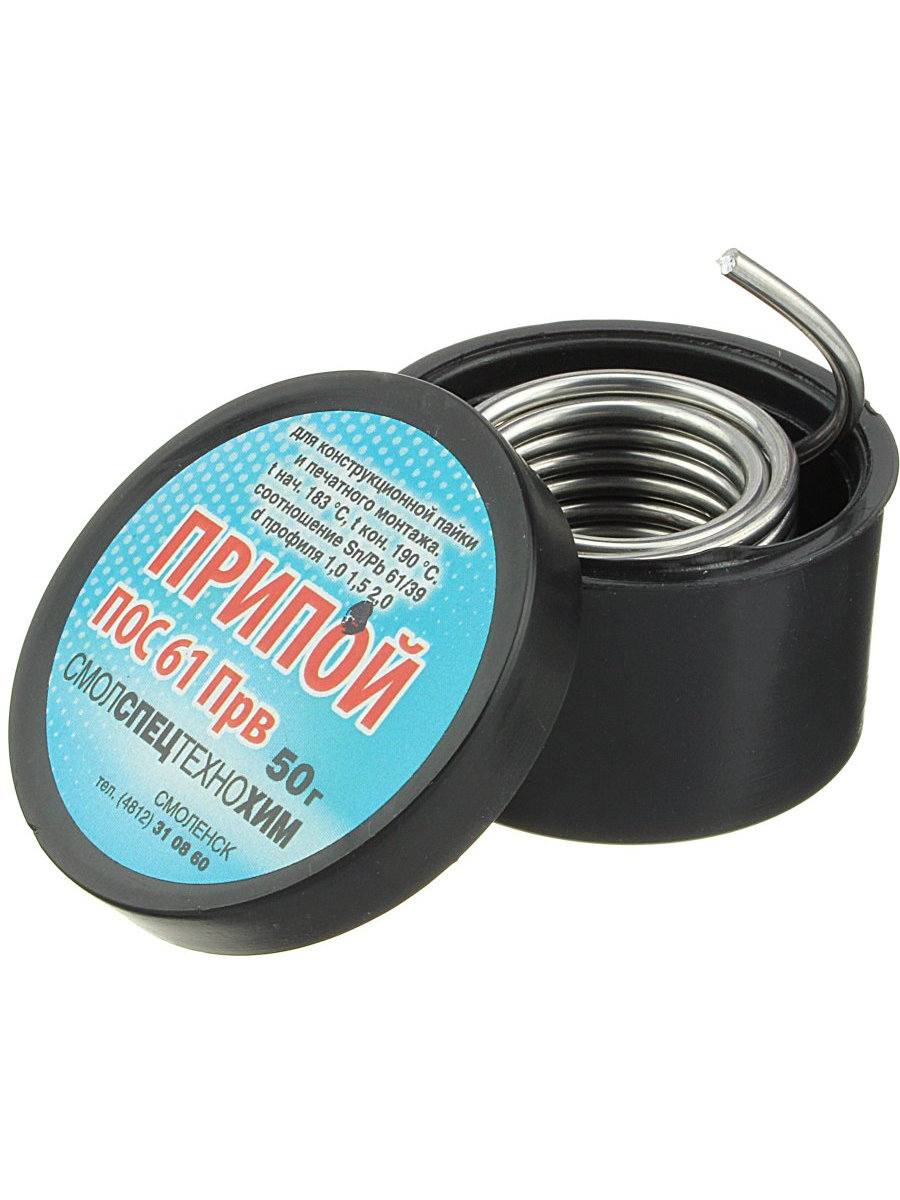 Припой 2мм ПОС-61 без канифоли вес 50гр спираль в банке