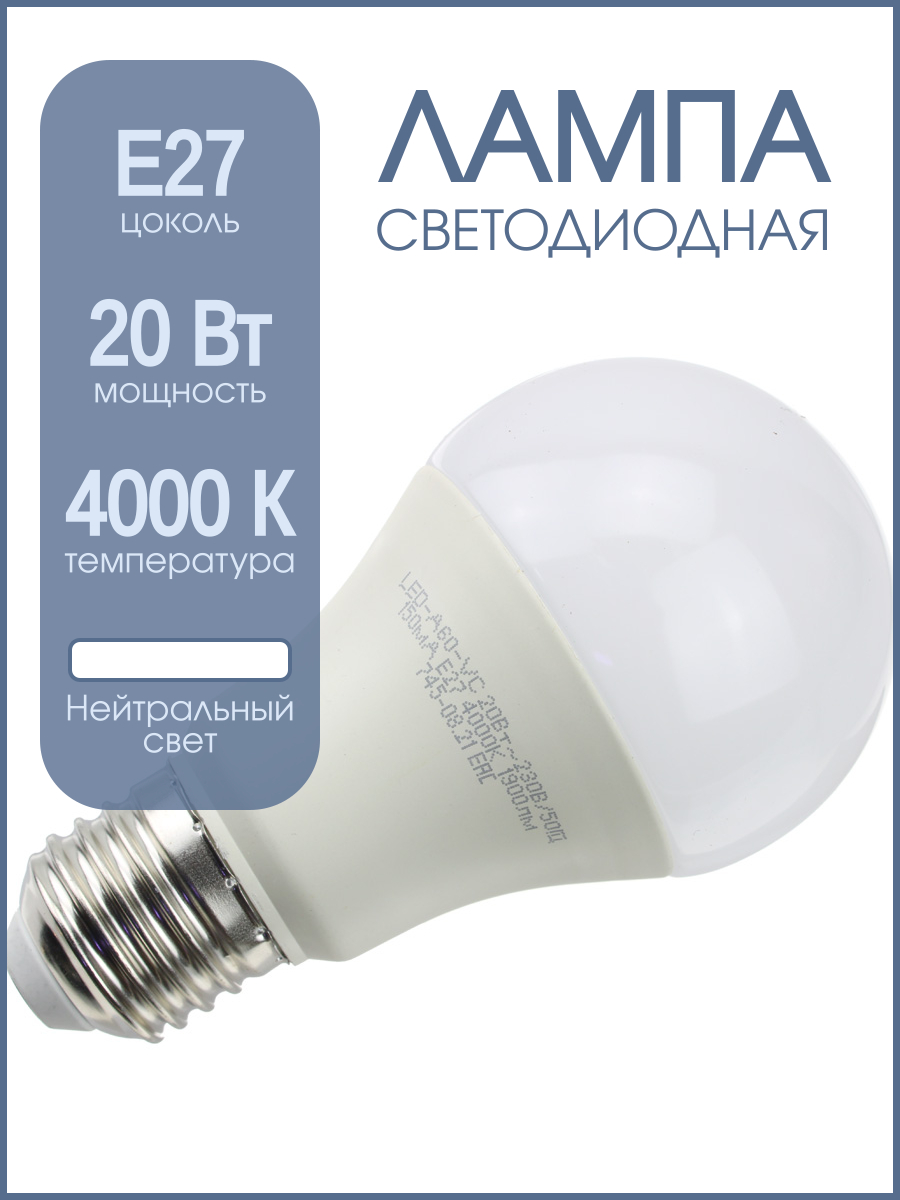 Лампа светодиодная LED-A65-VC 20Вт 230В Е27 4000К 1800Лм матовая in home