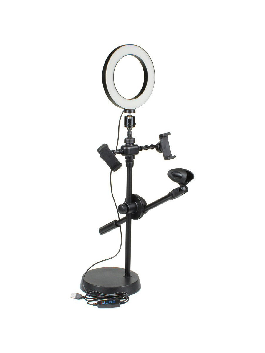 Селфи лампа кольцо 16см со штативом для блогера Selfie Ring Light с держателем микрофона